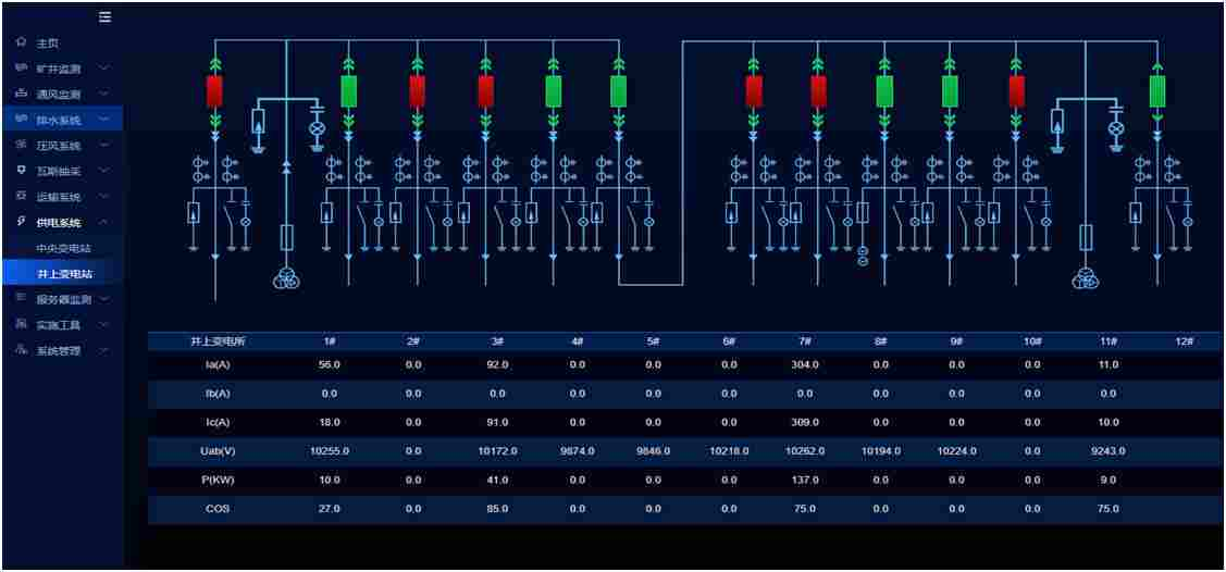 利用人工智能、工业物联网、大数据、云计算等现代技术手段,对供电系统与机电设备进行关联分析与控制,用智能系统来感知负荷变化、故障的演变及机电设备的运行情况,利用采集到的电网数据、供电设备数据等进行智能分析与诊断,预知设备故障、优化运行环境和设备配置,指导节能降耗。在统一的监控平台下对井下地面供电系统进行监控,能够实现定值在线计算、在线校验,实现电网的优化运行;能够实现对电网、开关设备、控制系统等进行诊断分析、预测预警,逐步实现设备和系统的预防性检修;能够实现电网的能耗分析、节能分析和能效分析,实现矿井经济运行。